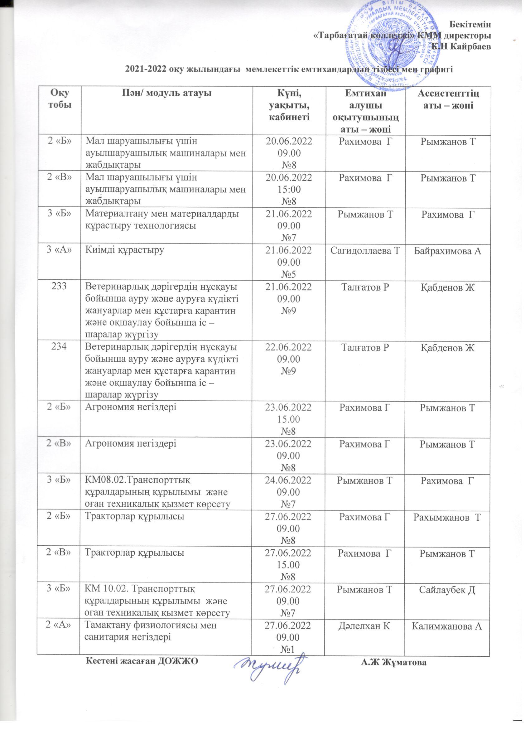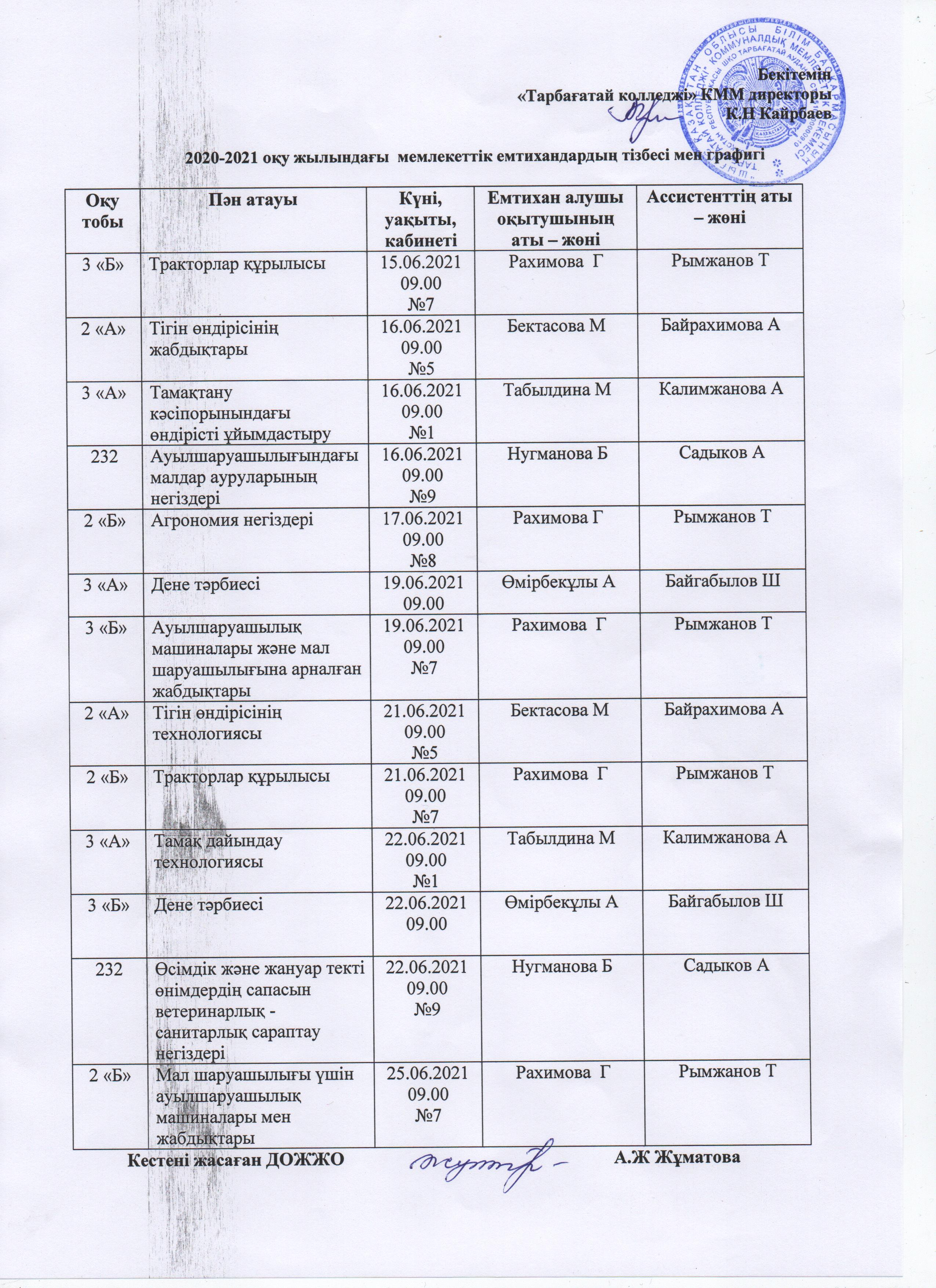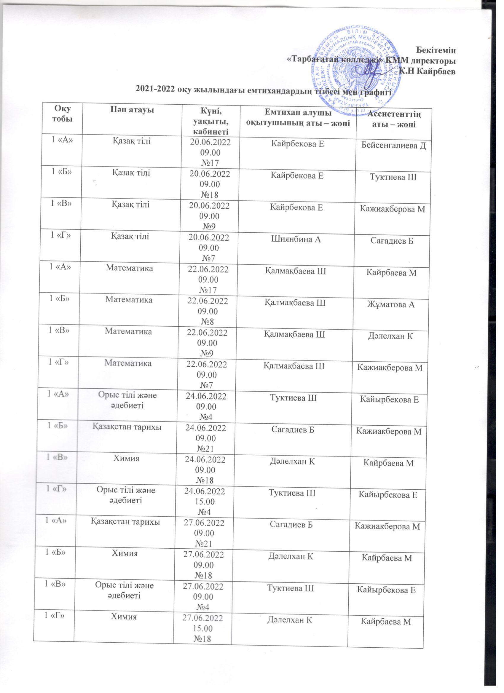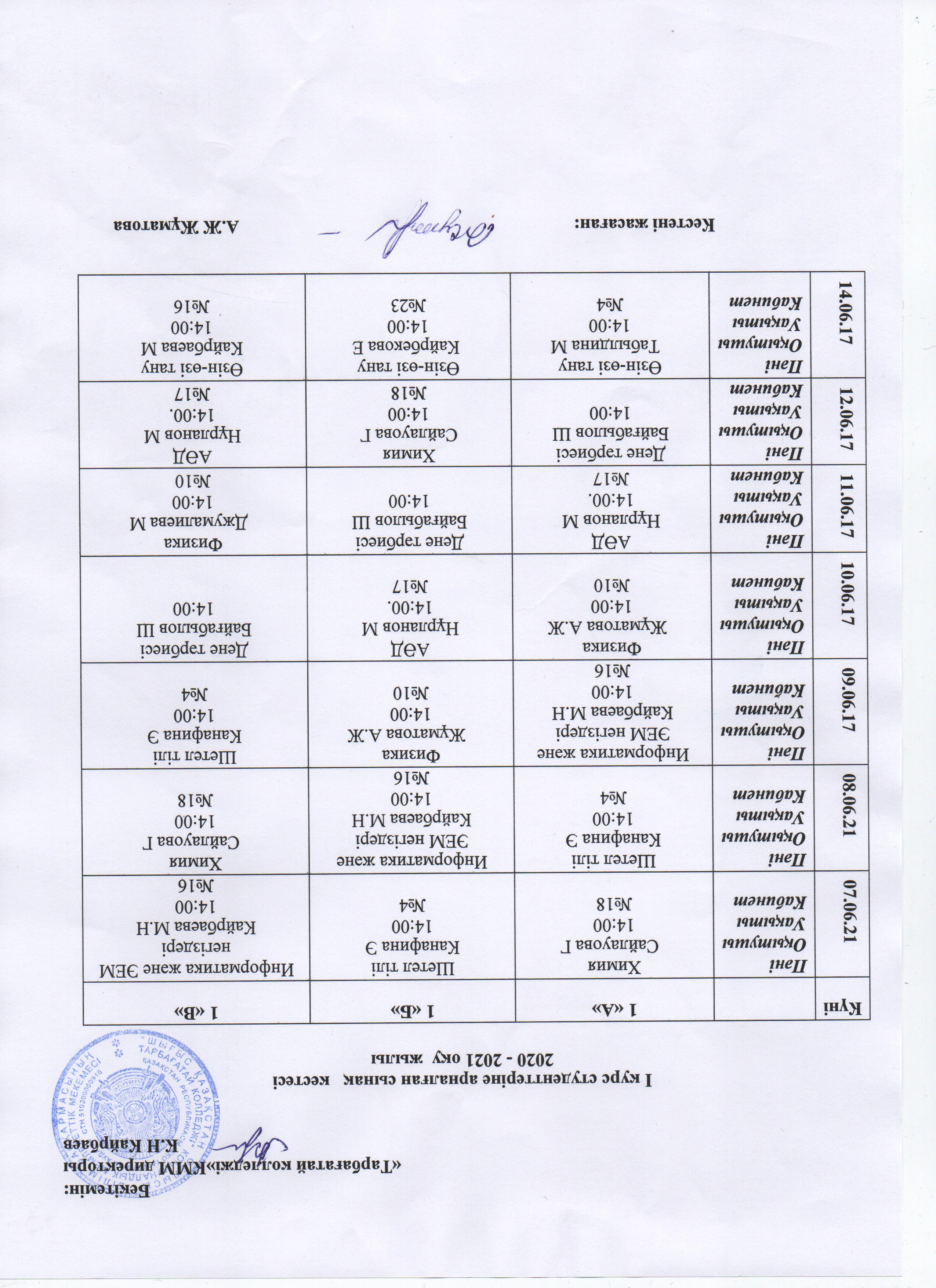 2020-2021 оқу жылындағы емтихандардың тізбесі мен графигі