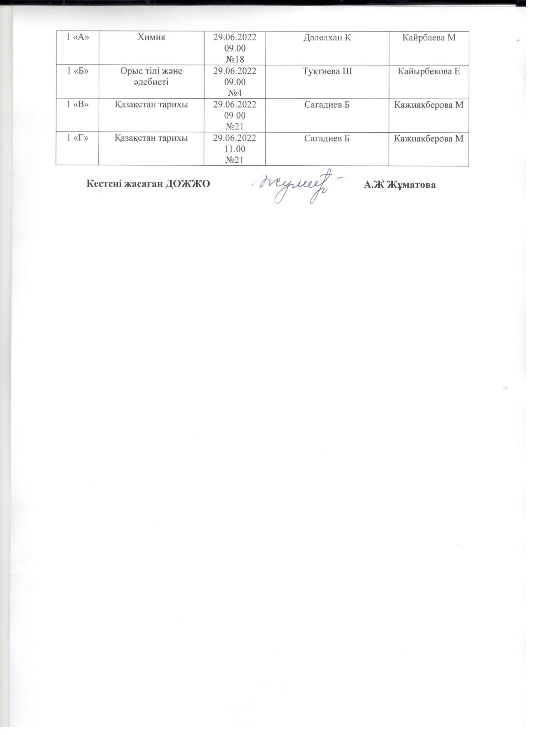 2020-2021 оқу жылындағы мемлекеттік емтихандардың тізбесі мен графигі