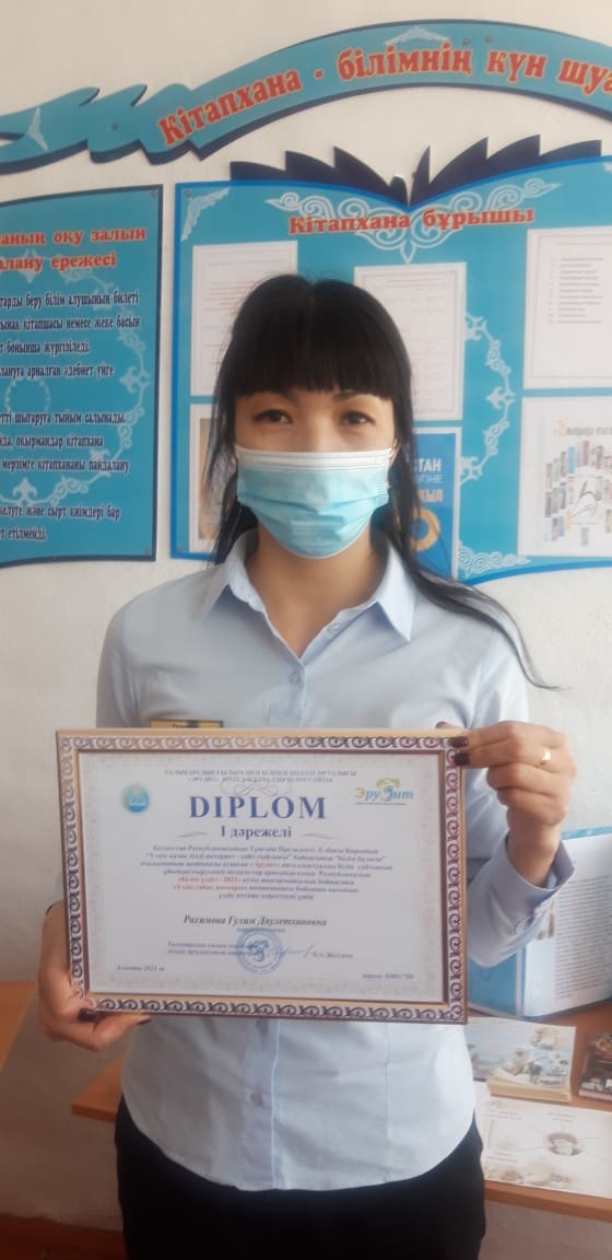 Республикалық "Білім үздігі-2021" атты шығармашылық байқауына арнаулы пәндер оқытушысы Рахимова Гулим Даулетхановна қатысып I дәрежелі Дипломмен марапатталды.