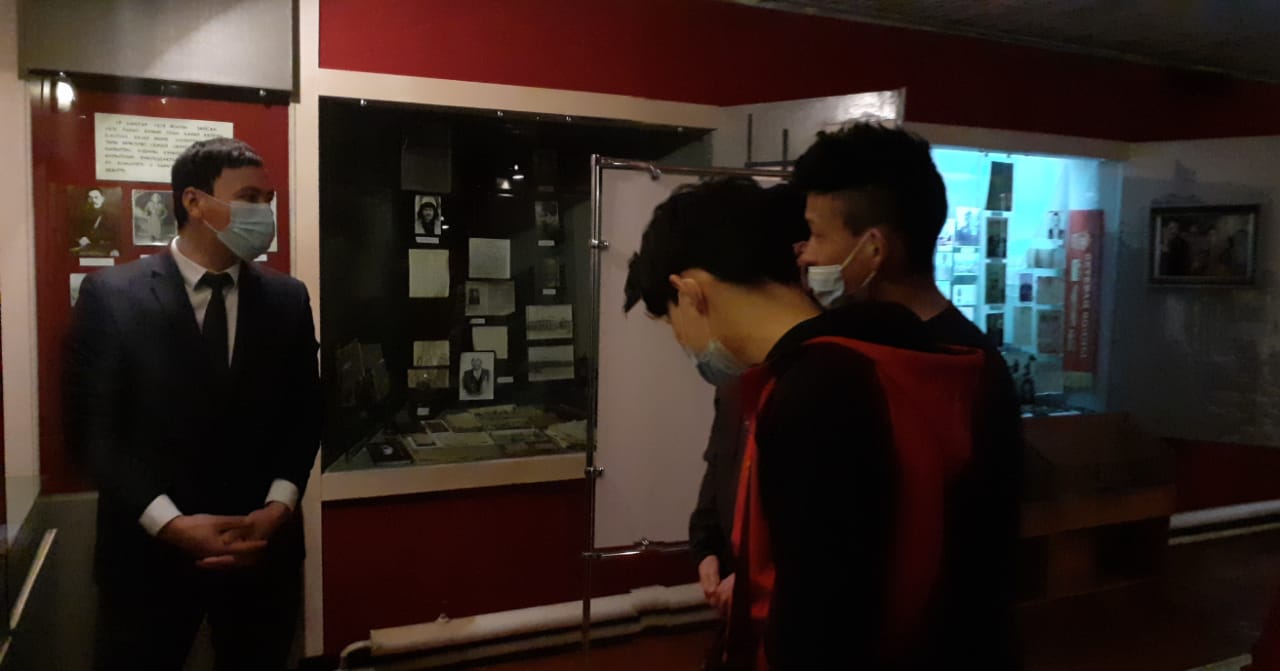 Ағымдағы жылдың 23 ақпан күні колледж студенттерін жатақхана тәрбиешісі Ғ.Мәукілов аудандық тарихи-өлкетану мұражайына саяхатқа апарды. Мұражай маманы М. Өмірбекұлы мұражайдағы көне дәуір,табиғат,қазіргі заман бөлімдерімен және көне жәдігерлермен таныстырды. Студенттер мұражайды аралау барысында үлкен ұлы сезімге, патриоттық рухқа бөленіп шықты. Мұражайға тек танымдық мақсатта келмей, керемет сезімге бөленіп, терең ой түйгендерін бір-біріне айтып ой бөлісті.