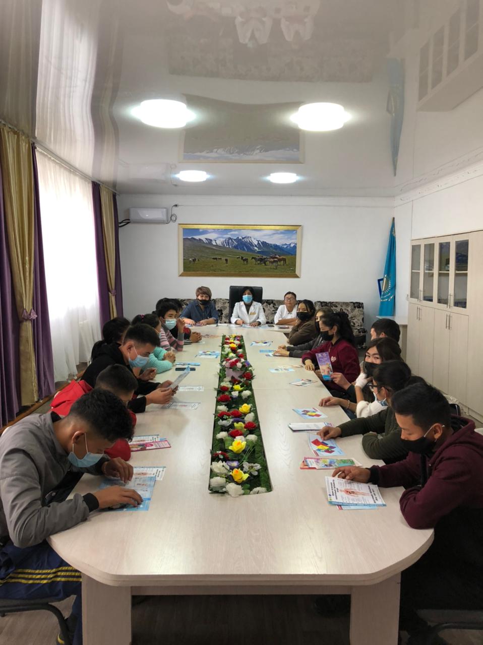 Студенттер арасында екпе алудың маңыздылығы туралы ақпараттық-түсіндіру жұмыстары жайлы Тарбағатай аудандық ауруханасының кардиолог-терапевт маманы Сәуле Серіковна жүргізді.Жер бетіне жайылған дертті жеңудің бірден- бір жолы екпе салдыру және вакцина алу бір ғана адамның емес,бір отбасының немесе тұтас ұжымның тағдырын сақтап қалуға септігін тигізетіндігін де айтып өтті.Жаппай екпе алу арқылы ұжымдық иммунитетті қалыптастырып,спортты жанымызға серік етіп,құнарлы тамақтану арқылы КОВИД-19 пандемиясына қарсы тұра алатынымызды тілге тиек етті.